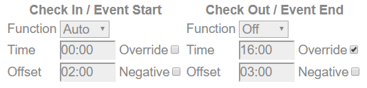 For Check Out, the override is flagged, so the time used will be 16:00 rather than 17:00. The offset will still be applied to this, meaning that at 13:00 the thermostat will switch to off.